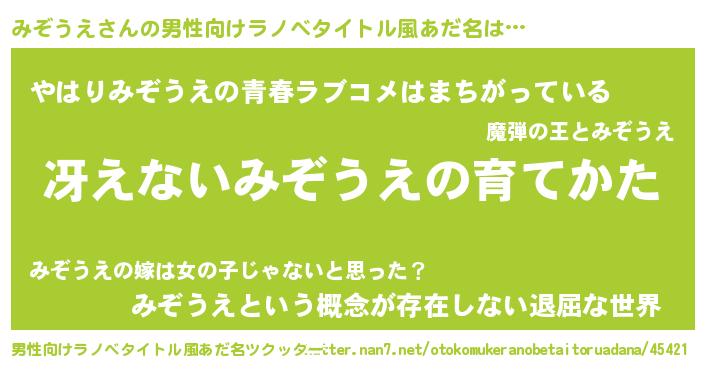 | ヘコむあだ名 | 『豆乳』『みぞうえ(笑)』『みぞを』 |