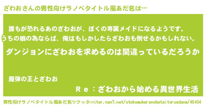 | 意味不明あだ名 | 『とにかく怪しいざわお』『自称ざわお』 |