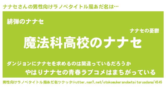 | 女子向けラノベタイトル風あだ名 | 『ナナセアンティーク』 |