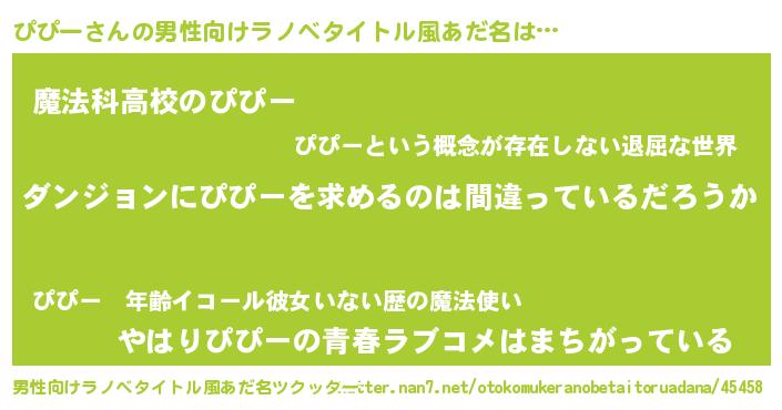 | 女子向けラノベタイトル風あだ名 | 『ぴぴーは平凡を望む』 |