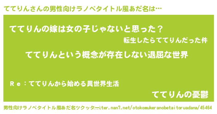 | 伝説のあだ名 | 『古より伝わる吟遊詩人ててりん』 |