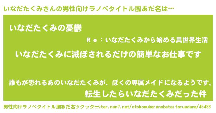 | ヘコむあだ名 | 『いなふぇ~』『いなだたくみ(爆)』 |