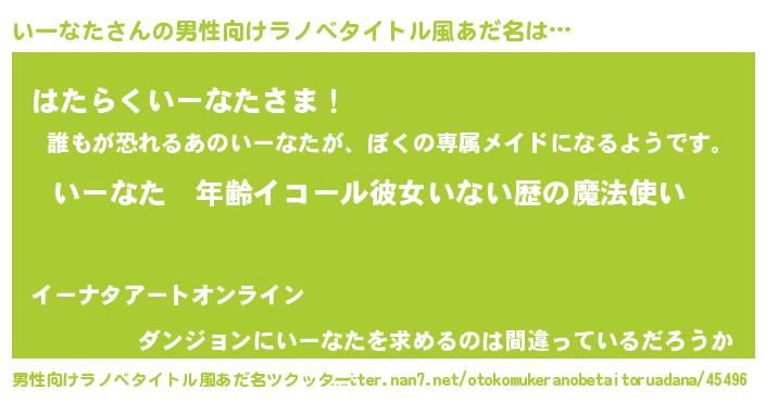 | 女子向けラノベタイトル風あだ名 | 『いーなたの玉の輿計画!』 |