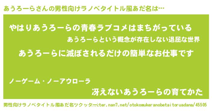 | ヘコむあだ名 | 『なまこ酢』『あうろーら(小並感)』 |