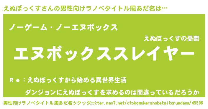 | 伝説のあだ名 | 『人々から恐れられる錬金術士えぬぼっくす』 |