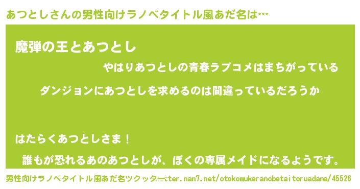 | 女子向けラノベタイトル風あだ名 | 『あつとしは平凡を望む』 |
