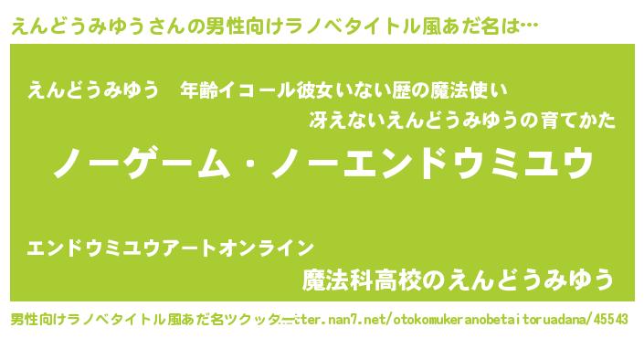 | ヒーロー風カッコイイあだ名 | 『慈愛の使者えんどうみゆう』 |