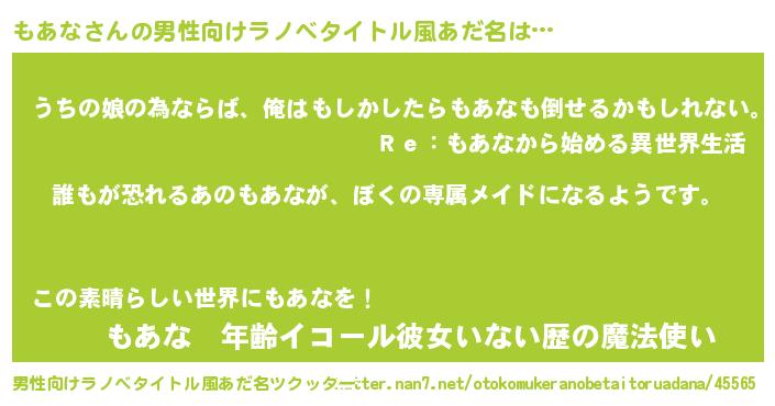 | 女子向けラノベタイトル風あだ名 | 『もあなの契約王妃』『もあなの婚約者』 |