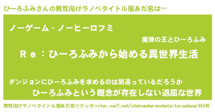 ひーろふみさんの男性向けラノベタイトル風あだ名をツクッター!