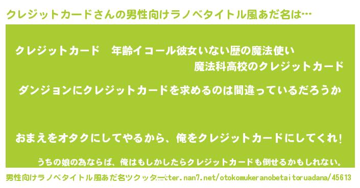 | 女子向けラノベタイトル風あだ名 | 『クレジットカードは平凡を望む』 |