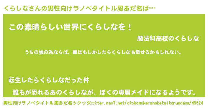 | ヘコむあだ名 | 『酢こんぶ』『くらしな(笑)』 |