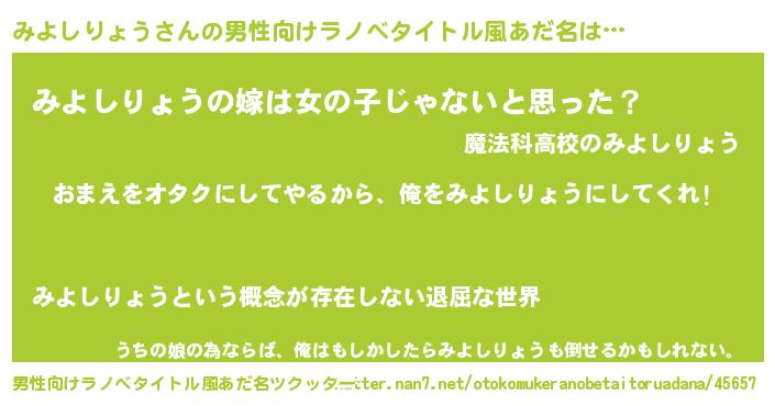 | 女子向けラノベタイトル風あだ名 | 『みよしりょう夫妻のなれそめ』 |