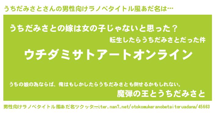 | 胡散臭い通販商品みたいなあだ名 | 『億万長者になれるブレスレット…その名も「うちだみさと」』 |