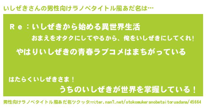 | 女子向けラノベタイトル風あだ名 | 『いしぜきの雑貨屋さん』 |