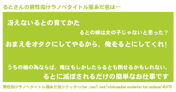 | 女子向けラノベタイトル風あだ名 | 『ると夫妻のなれそめ』『ると様がみてる』 |