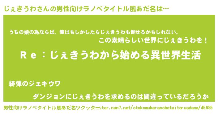 | 女子向けラノベタイトル風あだ名 | 『闇のじぇきうわ』 |