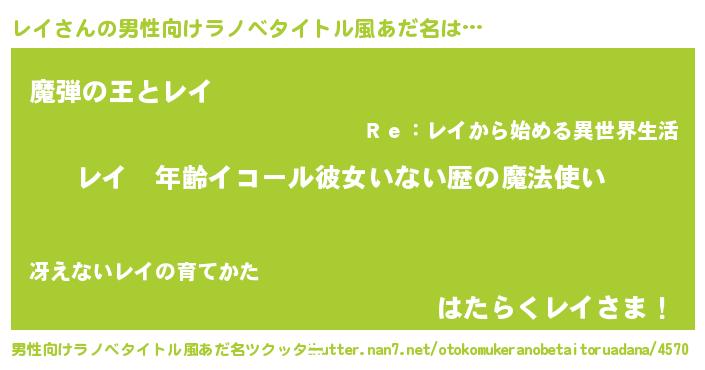 | 女子向けラノベタイトル風あだ名 | 『レイの玉の輿計画!』 |