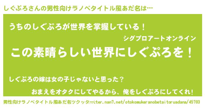 | 意味不明あだ名 | 『住所不定無職しぐぷろ(11歳)』 |