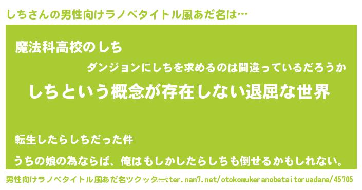 | 胡散臭い通販商品みたいなあだ名 | 『絶対に幸福をもたらす健康食品…その名も「しち」』 |