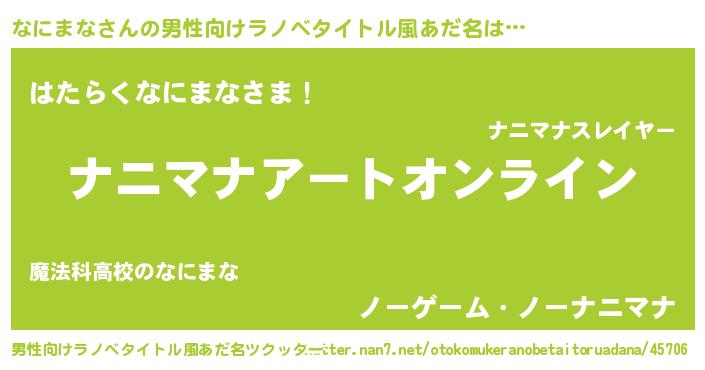 | 女子向けラノベタイトル風あだ名 | 『なにまな姫と円卓の騎士』 |