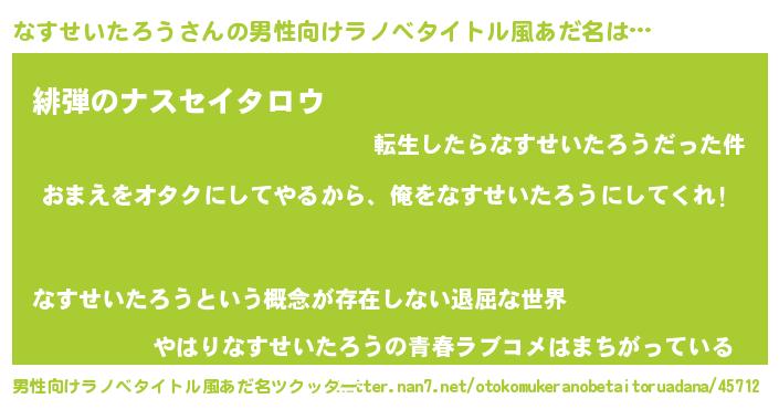 | ヒーロー風カッコイイあだ名 | 『友情の使者なすせいたろう』 |
