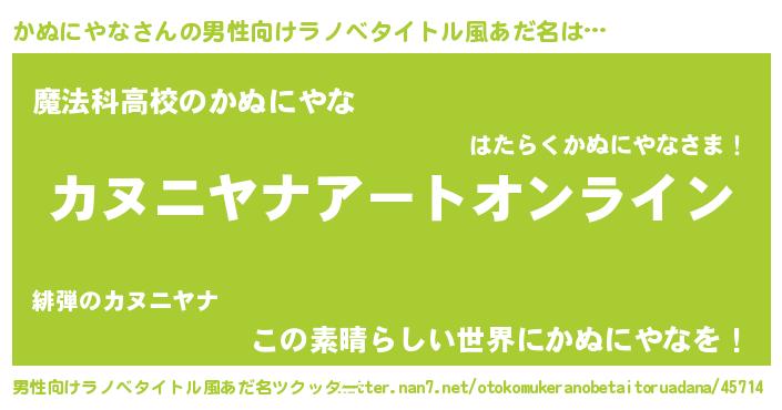 | 女子向けラノベタイトル風あだ名 | 『誰かこのかぬにやなを説明してください! ~契約から始まるウェディング~』 |