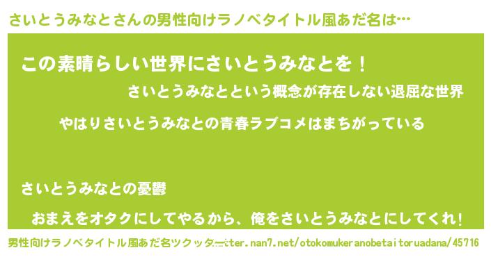 | 意味不明あだ名 | 『さいとうみなとフォーエバー』 |
