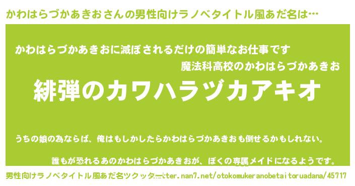 | 意味不明あだ名 | 『永久保存かわはらづかあきお』 |