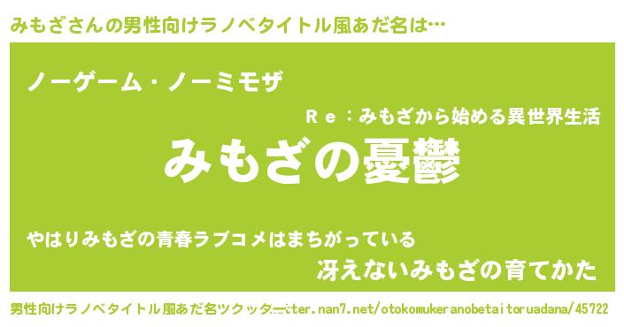 | 胡散臭い通販商品みたいなあだ名 | 『必ず成功するブレスレット…その名も「みもざ」』 |
