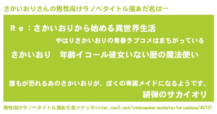 | 肩書あだ名 | 『さかいおり少尉』『さかいおり総統』 |