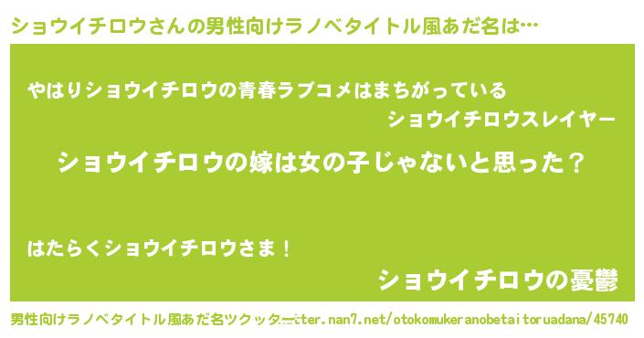 | ヒーロー風カッコイイあだ名 | 『炎刃騎士ショ』『仮面ショダー』 |