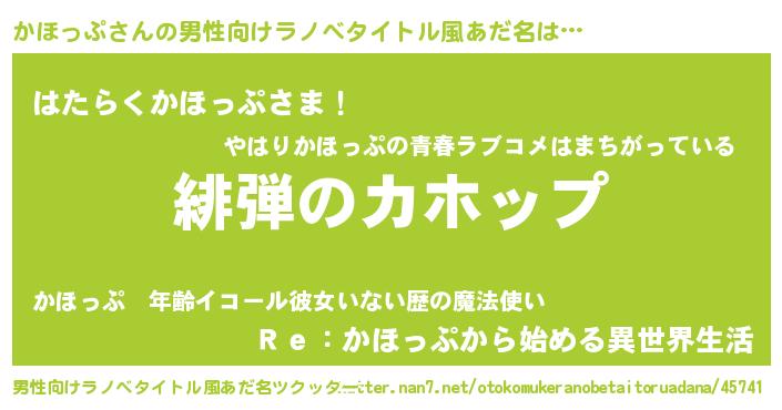 | 伝説のあだ名 | 『秘められし忍者かほっぷ』 |