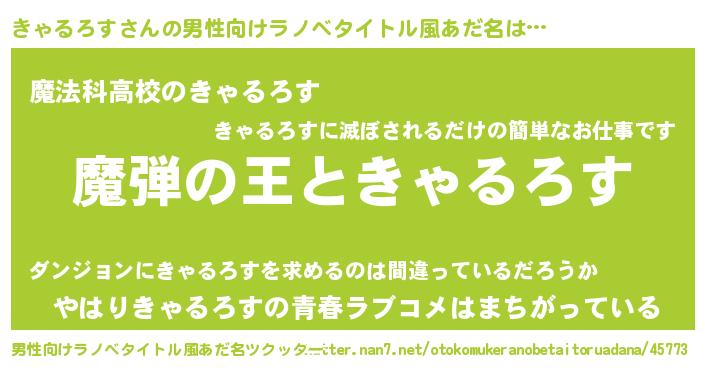 | 意味不明あだ名 | 『住所不定無職きゃるろす(74歳)』 |