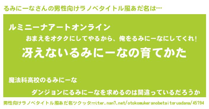 | 胡散臭い通販商品みたいなあだ名 | 『モテモテ間違いなし霊験あらたかなお札…その名も「るみにーな」』 |