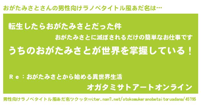 | 胡散臭い通販商品みたいなあだ名 | 『億万長者になれる霊験あらたかなお札…その名も「おがたみさと」』 |