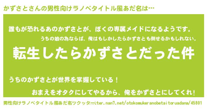 | 女子向けラノベタイトル風あだ名 | 『かずさとの玉の輿計画!』 |