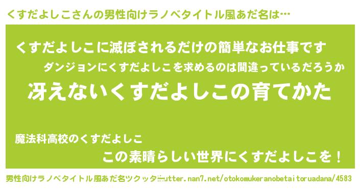 | 意味不明あだ名 | 『住所不定無職くすだよしこ(62歳)』 |