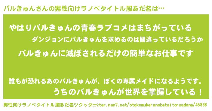 | ヘコむあだ名 | 『なまこ酢』『バルを』『バルにー』 |