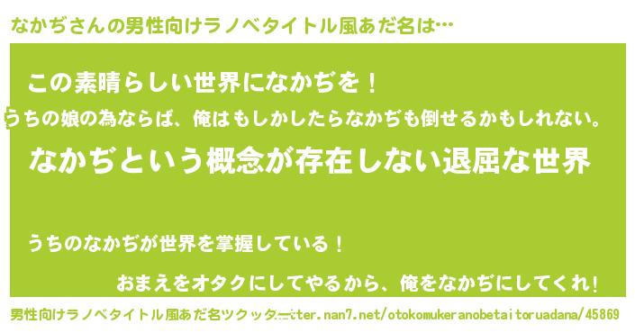 | 胡散臭い通販商品みたいなあだ名 | 『来世でも幸せになれる水素水…その名も「なかぢ」』 |