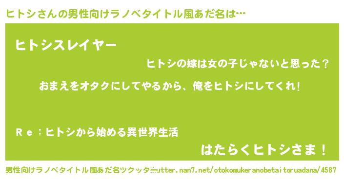 | ヒーロー風カッコイイあだ名 | 『友情の使者ヒトシ』『炎刃騎士ヒト』 |