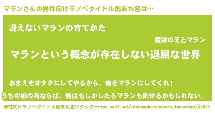 | ヒーロー風カッコイイあだ名 | 『ネオマラン』『ウルトラマランマン』 |