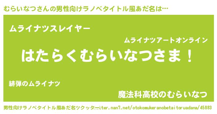 | ヒーロー風カッコイイあだ名 | 『超時空戦士ムライナツ』『仮面ムラダー』 |
