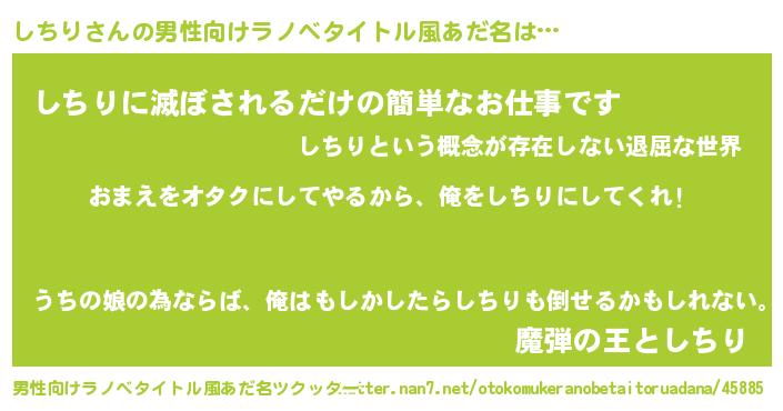 | 女子向けラノベタイトル風あだ名 | 『しちり夫妻のなれそめ』 |