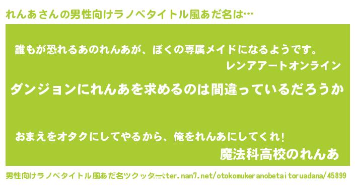 | 女子向けラノベタイトル風あだ名 | 『れんあは平凡を望む』『れんあ恋絵巻』 |