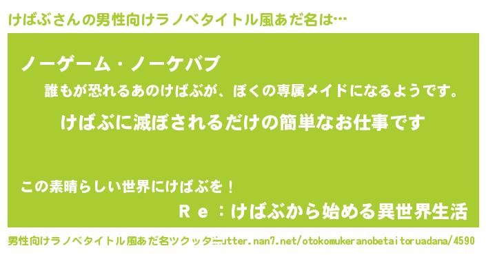 | 欧米人風あだ名 | 『アンジェラ・けばぶ』『ダニエルけばぶ』 |
