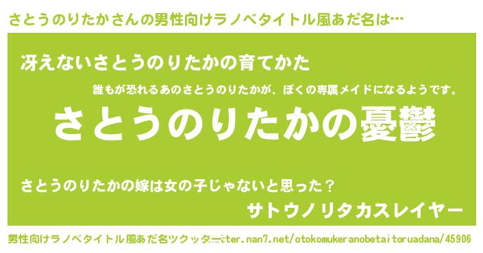 | 女子向けラノベタイトル風あだ名 | 『(仮)さとうのりたかのやんごとなき事情』 |
