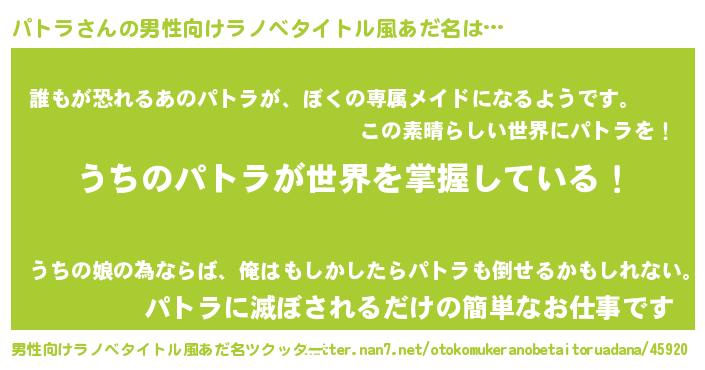 | 意味不明あだ名 | 『永久保存パトラ』『パトラフォーエバー』 |