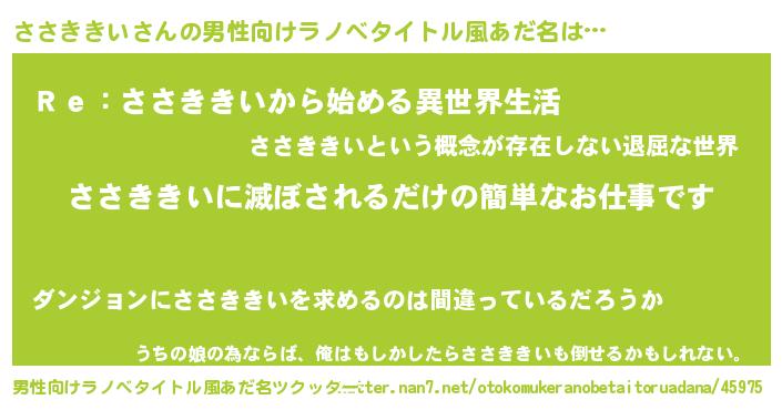 | 意味不明あだ名 | 『自称ささききい』『永久保存ささききい』 |
