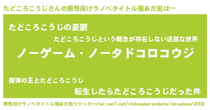| 伝説のあだ名 | 『救世主となる技術者たどころこうじ』 |