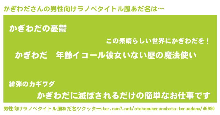 | 胡散臭い通販商品みたいなあだ名 | 『億万長者になれるブレスレット…その名も「かぎわだ」』 |